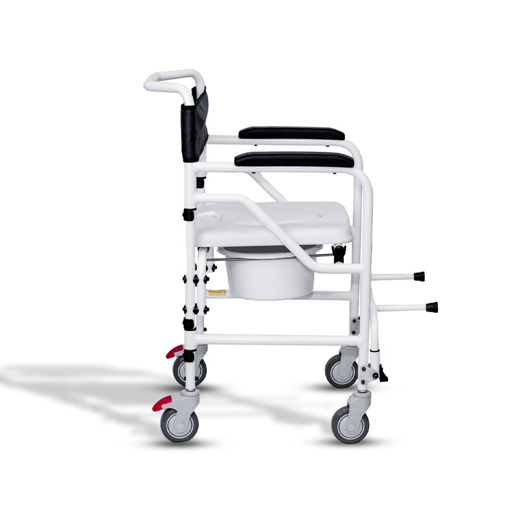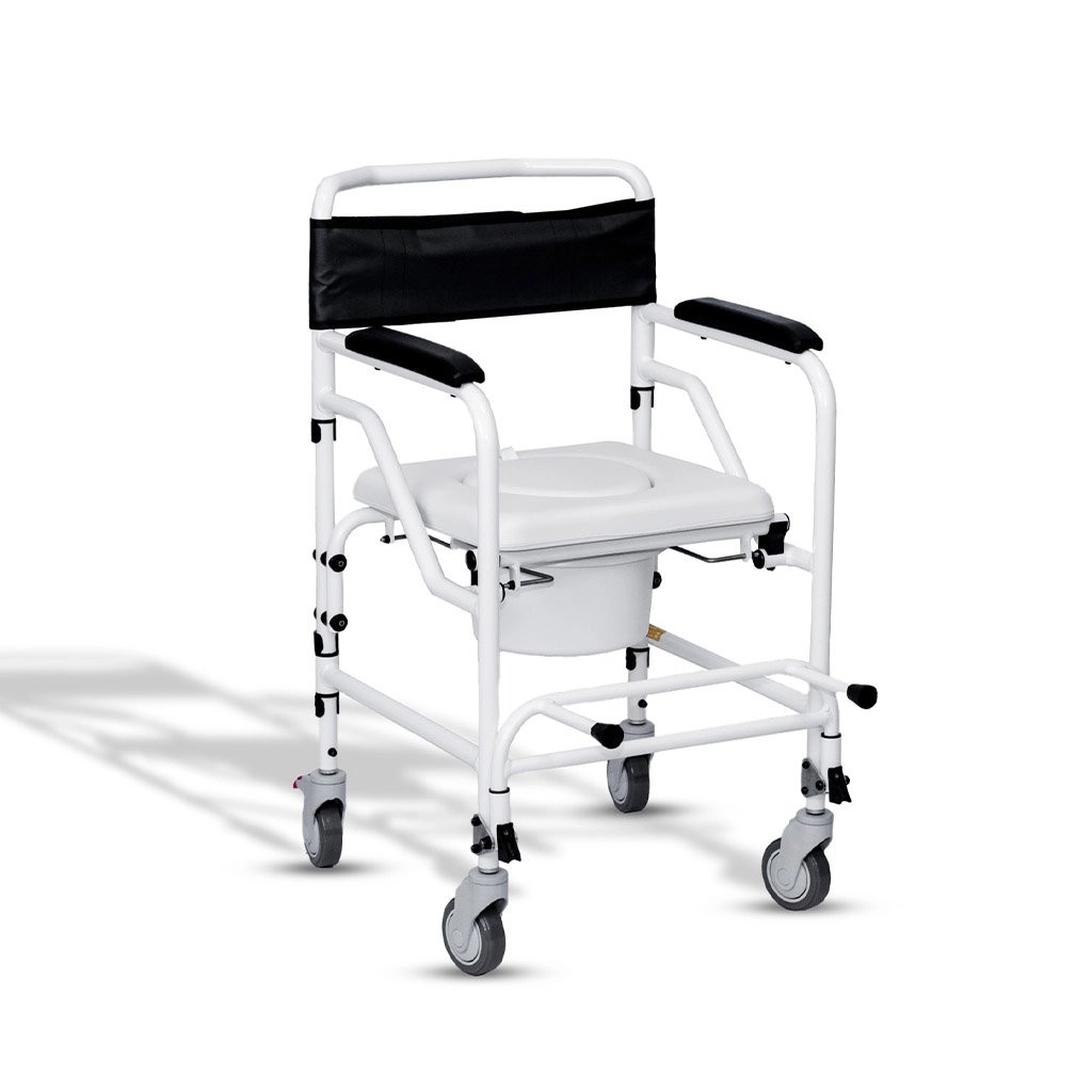 Possui as 4 rodízios pequenos para não ocupar muito espaço nos ambientes. O assento é extremamente confortável e impermeável. Ainda possui um coletor dando maior comodidade em sua utilização nos diversos ambientes.