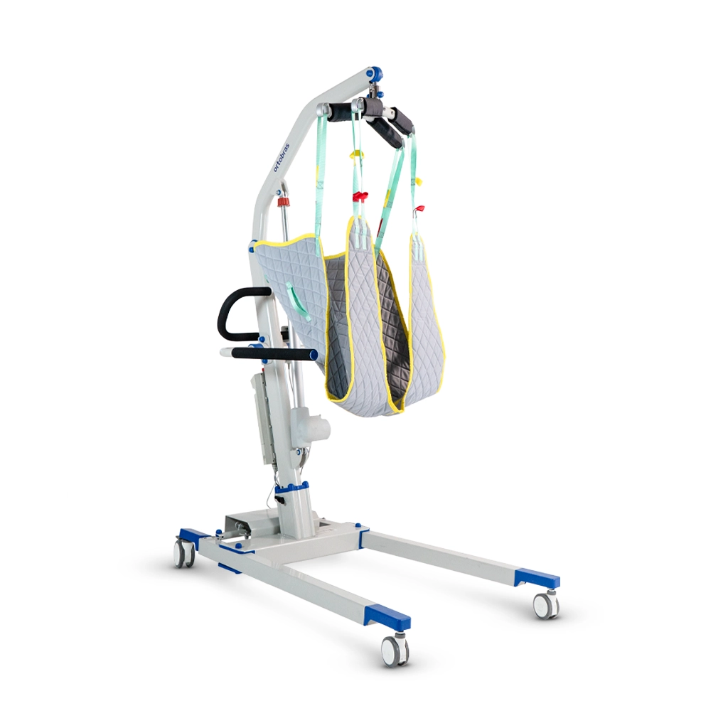Unico com capacidade de até 300 kg, o ELEV 300 permite simples ajustes com apenas um toque de botão, facilitando o acesso em diferentes ambientes. Além disso, é o único elevador capaz de posicionar o selete até a altura do chão, o que proporciona transferências seguras e confortáveis, tanto da cama quanto do piso.
